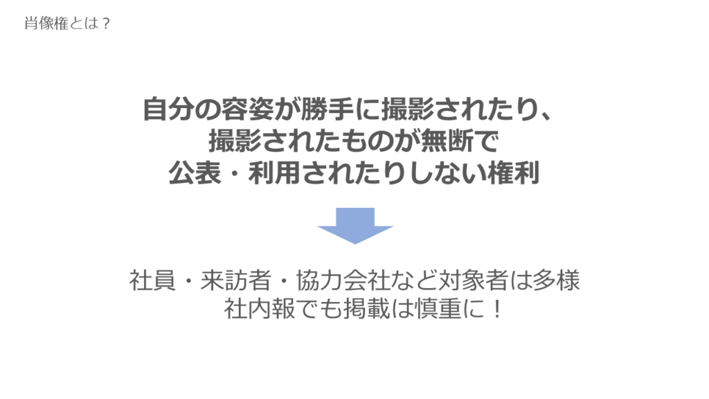 社内報は企業関係者のみで扱うことが多いですが、「写真の肖像権」や「素材の著作権」について悩むことは少なくないはず。この講座では、社内報の役割をあらためて共有し、こんなときはNG?OK?が具体的にイメージできるよう、クイズ形式で著作権、肖像権についての基礎知識を共有しました。