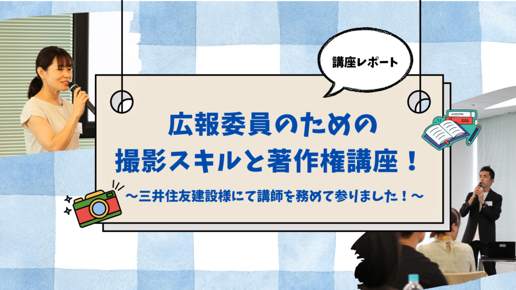 7月18日(金)、三井住友建設株式会社 本店で「全国広報委員会議」が開かれました。今年のテーマは、「写真講座」。ウィズワークスは講師として参加し、撮影の基礎や実践ワークに加えて、広報活動に欠かせない「著作権・肖像権」についても学ぶプログラムを実施しました。全国から50名ほど参加した会議当日の様子とその内容の一部をお伝えします!