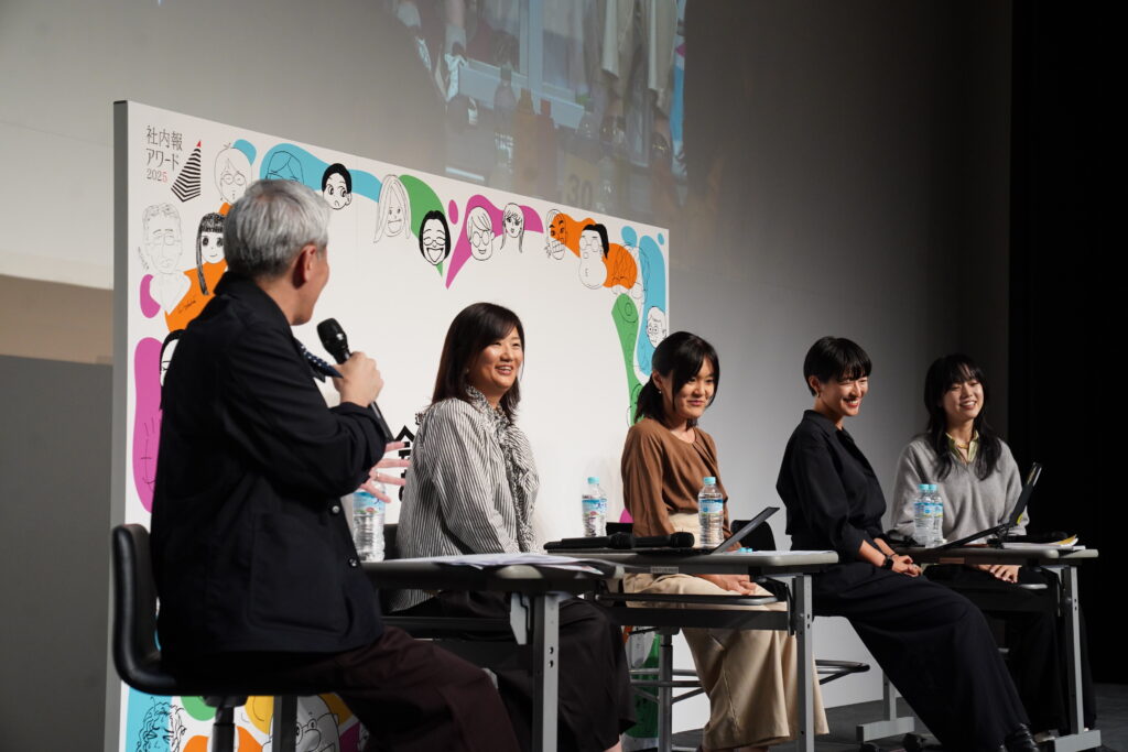受賞企画の裏話に加えて、「会社が大好き。みんなに会社の良さを知ってもらいたい」という想いをエネルギーに、社内報を楽しみながら進める姿勢が語られました。異なる部署間の社員を集めて社長に褒めてもらうランチ会「グッジョブ!カフェ」の定期開催など、ユニークな取り組みも紹介されました。