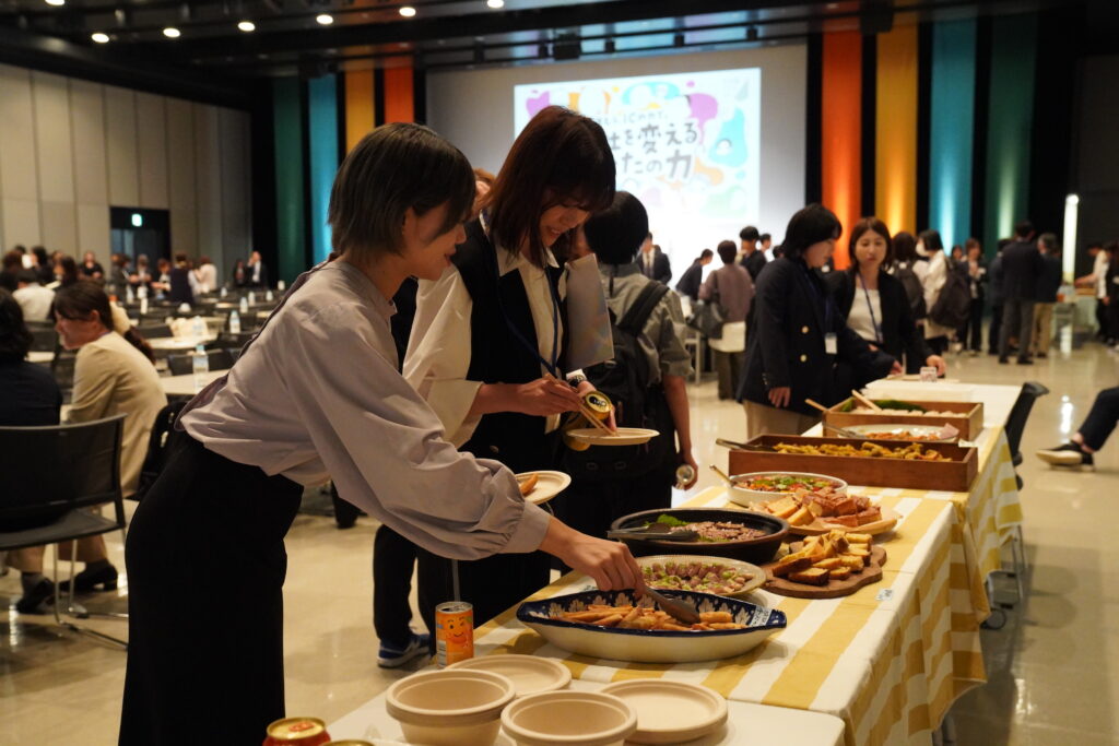 イベントの締めくくりは、ビュッフェ形式の懇親会。参加者同士、参加者と審査員、参加者と運営スタッフなど、さまざまな立場を超えた交流があちこちで生まれ、「社内報アワード」ならではの温かいつながりの場となりました。
