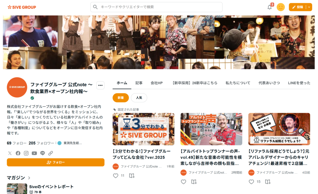 このときに、せっかくなら自社のブランディングにも役立つオープンな社内報にしていこうという方向性は決めていて、オウンドメディアも立ち上げました。しかし、自社で運営していくのは難しいとわかり、別の方法を模索する中で、「復活させたい」と言っていたスタッフが現場に戻ることになり、紙の「ファイブマガジン」は再度休刊。それでも社内報のプロジェクトは継続させる必要があり、私が全面的に引き継ぐことになったのです。