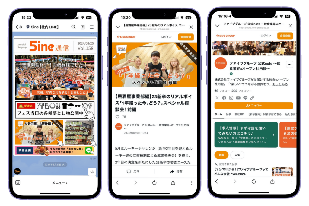 株式会社ファイブグループ居酒屋店舗でのアルバイトを経験し、「“楽しい”でつながる世界をつくる」という会社の理念に共感し、2012年に正社員に。新店舗を含め複数の居酒屋店舗で責任者を務め、2018年にバックオフィス部門へ異動。2019年より広報業務立ち上げに携わり、社内LINEとオープン社内報の立ち上げ・運用を担ってきた。現在は経営企画部のコーポレートコミュニケーション・広報担当として、会社PR、採用広報、社内報など広報全般の業務に携わり、社内報アワード2022では「Web/アプリ社内報部門_媒体全体」でグランプリを獲得。(ファイブグループ公式note:https://note.five-group.co.jp/)