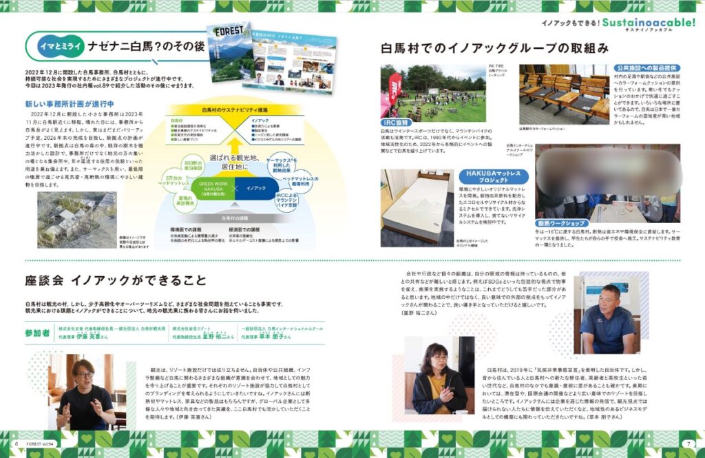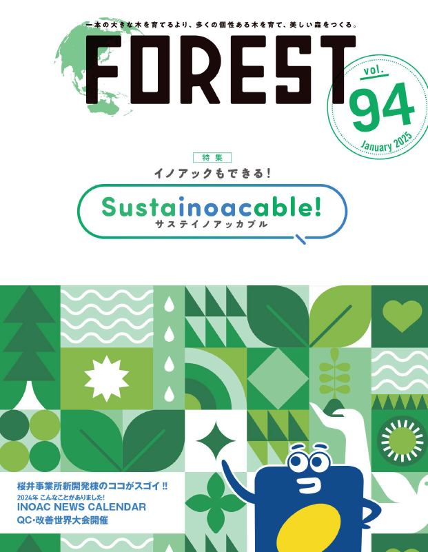 Vol.94は特集がサステナビリティに関することで、自社従業員には馴染みが薄いものでした。まずは読んで知ってもらうため、堅苦しくならないようにやわらかいテイストのイラストで表紙を飾りました。自社キャラクターも添えて、親しみやすさをアップ。特集本編にも同じイラストをページ上下に帯として配置し、一体感が出るように工夫しました。