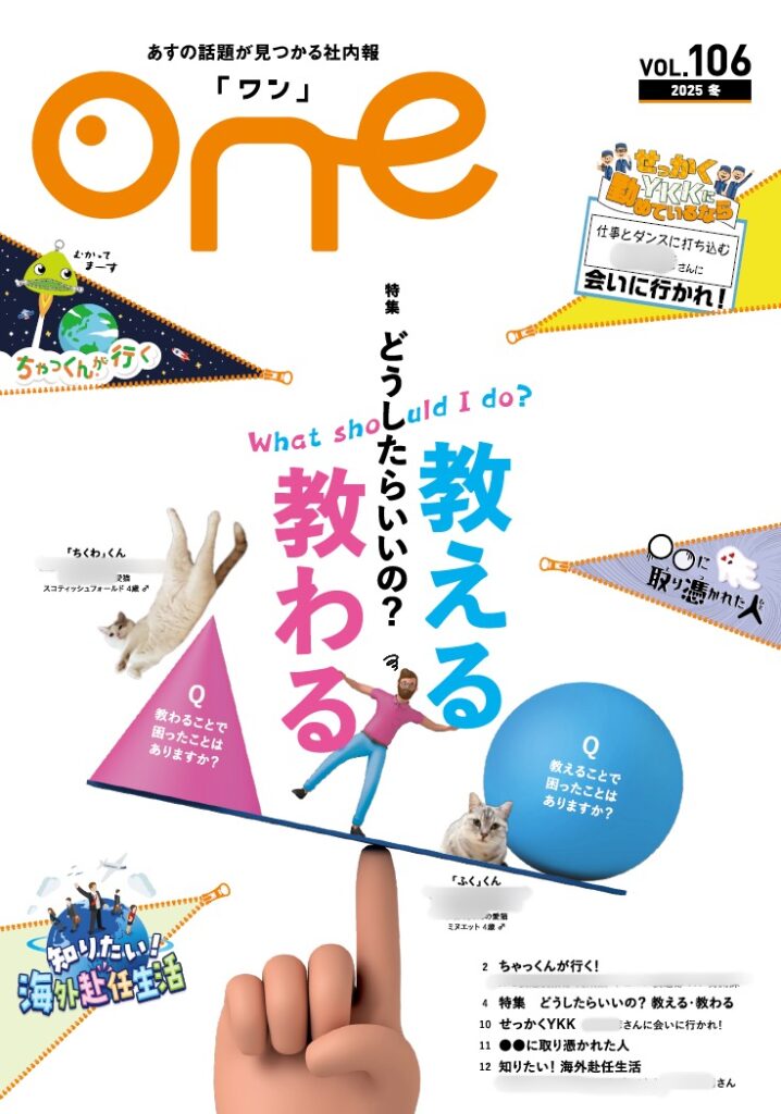 本号の特集は、深刻にとらえがちなテーマを、表紙から「楽しく読める」と印象付けられるようコミカルなデザインにしました。さらに、社員の愛猫のユニークなポーズを加えることで、誌面全体に親しみやすさをプラスしています。