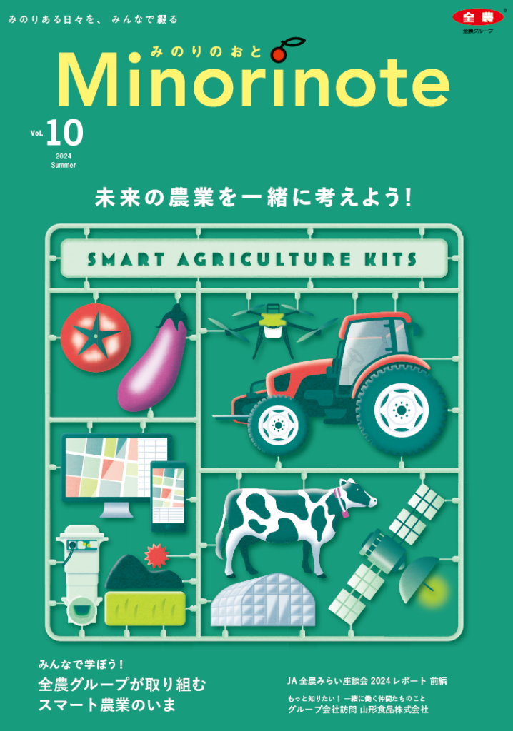 今号は、スマート農業を推進する全農グループのさまざまな取り組み事例を幅広く紹介しています。「スマート農業」と聞くと、人によっては小難しそう…と構えてしまう方もいらっしゃると考え、プラモデルをモチーフにしたポップなビジュアルで企画に向き合う読者の心理的ハードルを下げる意図がありました。農業をイメージさせるグリーンを背景に、プラモデルのパーツ(ビジュアル)により、企画で何が語られるのかが直感的に分かる仕掛けになっています。多くの読者が子ども時代に目にしたプラモデルをモチーフとしたことが奏功して興味を引き、読者アンケートではスマート農業企画は高評価を受けました。