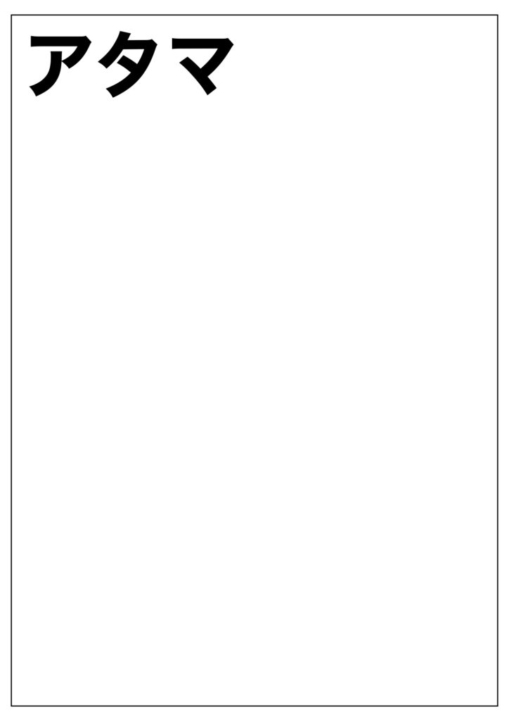 ページを読むときの読者の目線の動きはレイアウトによって誘導できるんだ。紙面上で一番上の位置を「アタマ」と呼び、多くの人は、まずそこから読み始めるよ。