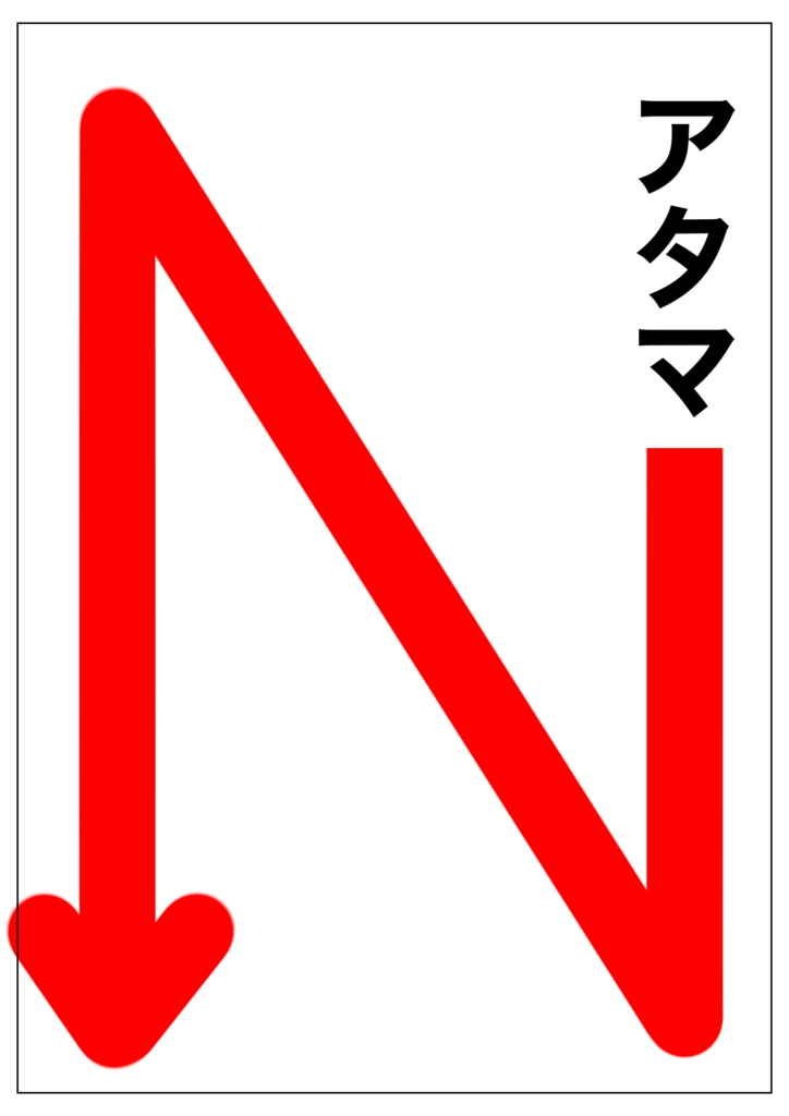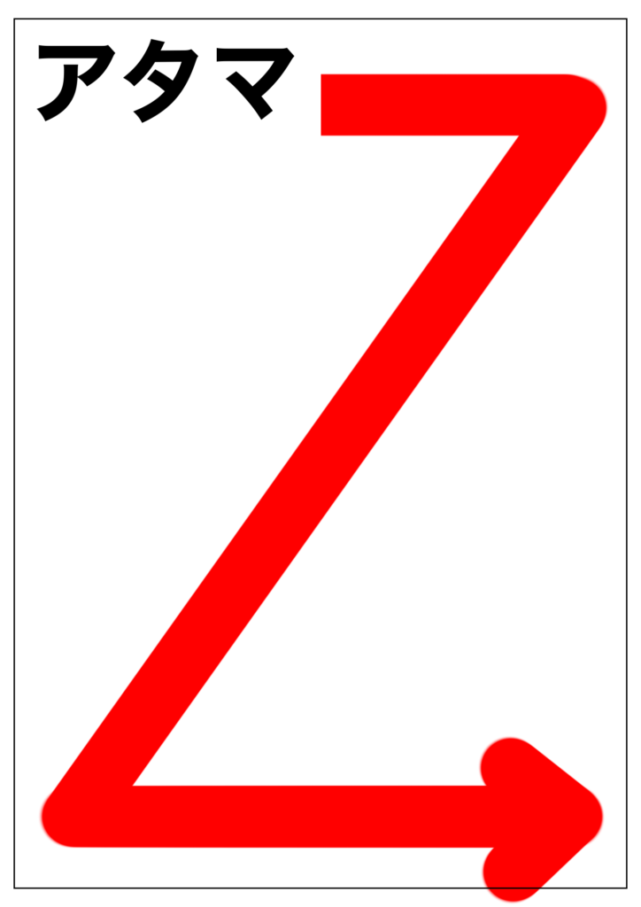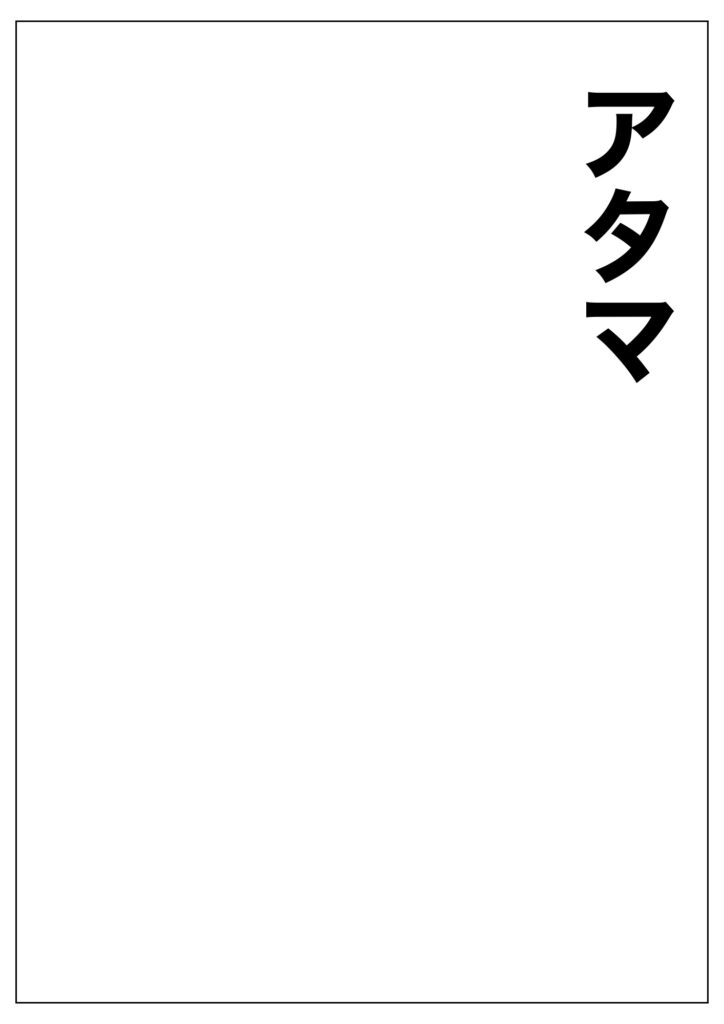 縦書きと横書きでアタマの場所が異なるから、注意してね。横書きの場合、左上から読み始めて、右下で読み終わるようになっているから……。