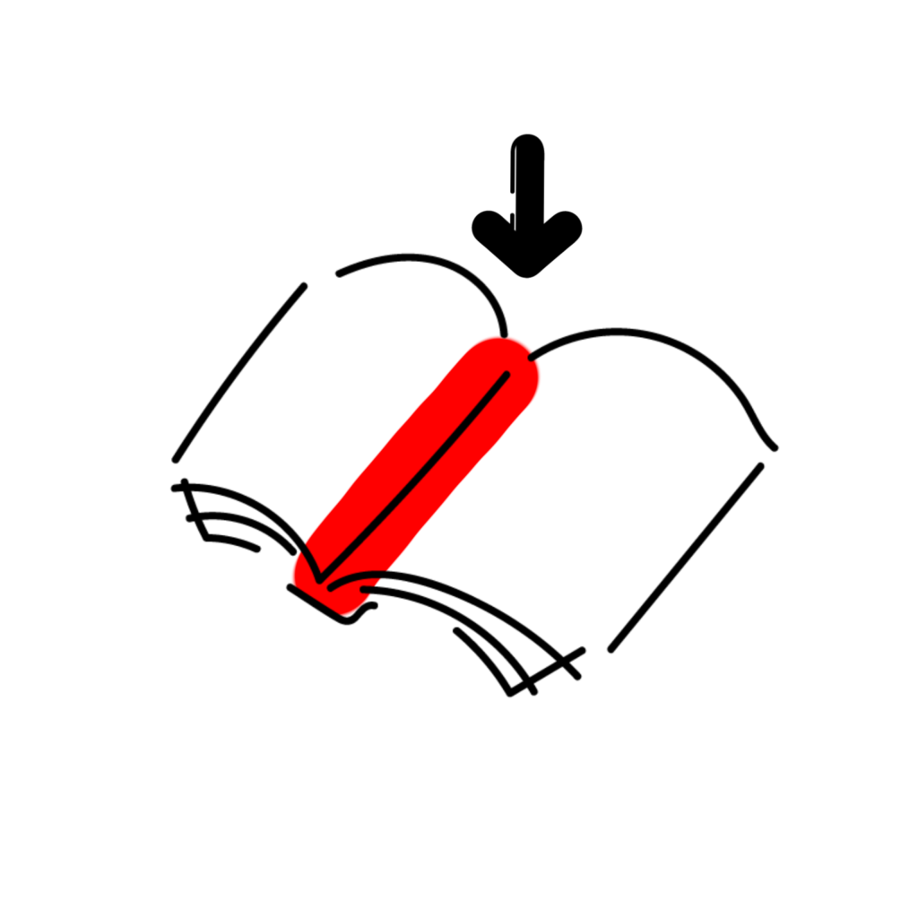 見開きの真ん中には、製本する際にページ同士をくっつけるための余白がいるんだ。これを綴じ代って呼ぶよ。綴じ代にかかるように図や文字が載っていると、綴じ代部分に巻き込まれちゃって重要な部分が見えなくなっちゃうから、重要なものほど綴じ代の近くに置かないほうがいいんだよ。