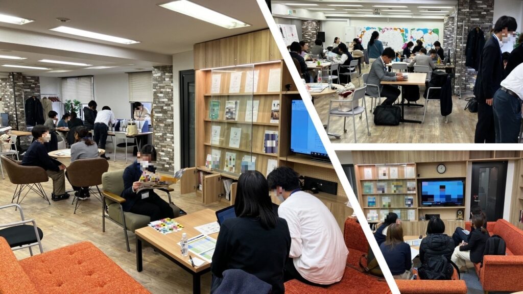 「オープン・社内報ギャラリー」では、皆様が思い思いに今年の受賞作や社内報ギャラリー内に展示している過去の受賞作品を手に取り、企画の作り方や表現方法などを学んだりしながら、ほかの参加者たちと交流していただきました。