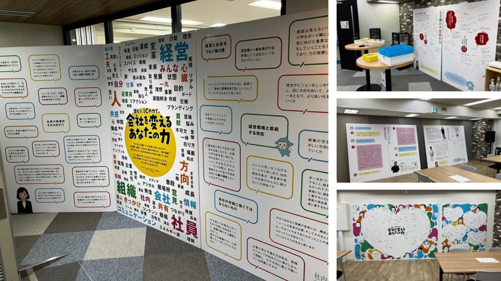 「社内報アワード2025」の受賞作品をいち早くご覧いただくだけでなく、10月10日に開催した「表彰・交流イベント」で展示したパネルも設置し、アワードの雰囲気を感じながら、ご参加いただいた皆様の交流の場としてもご活用いただきました。