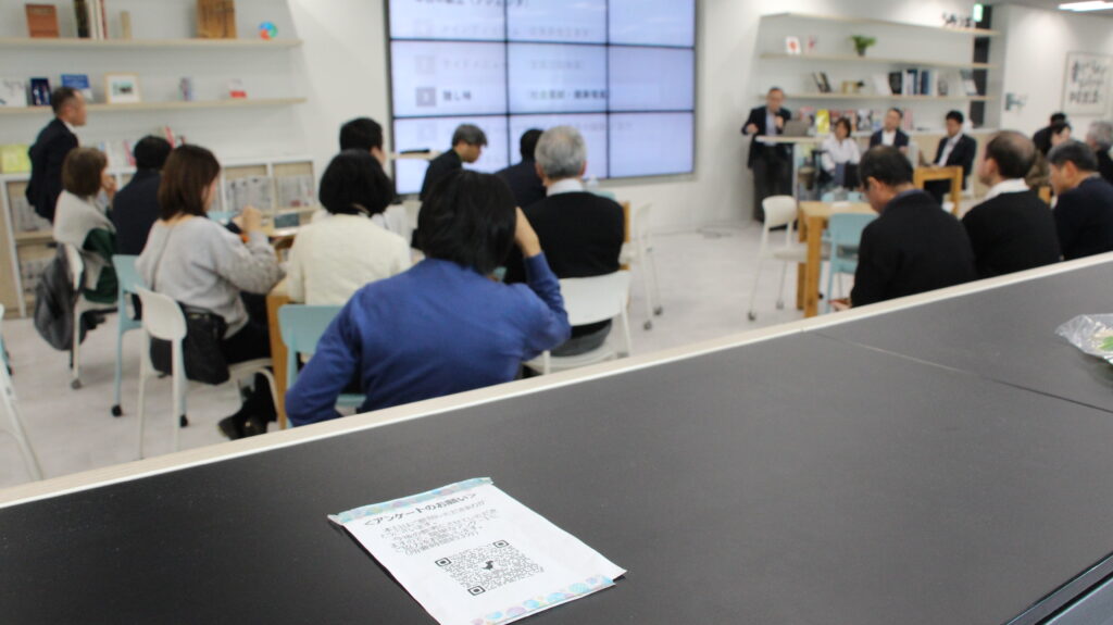 アンケートのQRコードは、デスクや収納棚など、会場のあちこちに掲示。さらに、オンライン参加者にはコメント欄にアンケートのURLを固定で表示するなど、イベント終了後に限らず、開催中いつでも回答できる工夫がされていました。また参加された方にはお礼メールも送られているそうです。こうした終了後のフォローが、継続的な参加につながっているように感じられました。